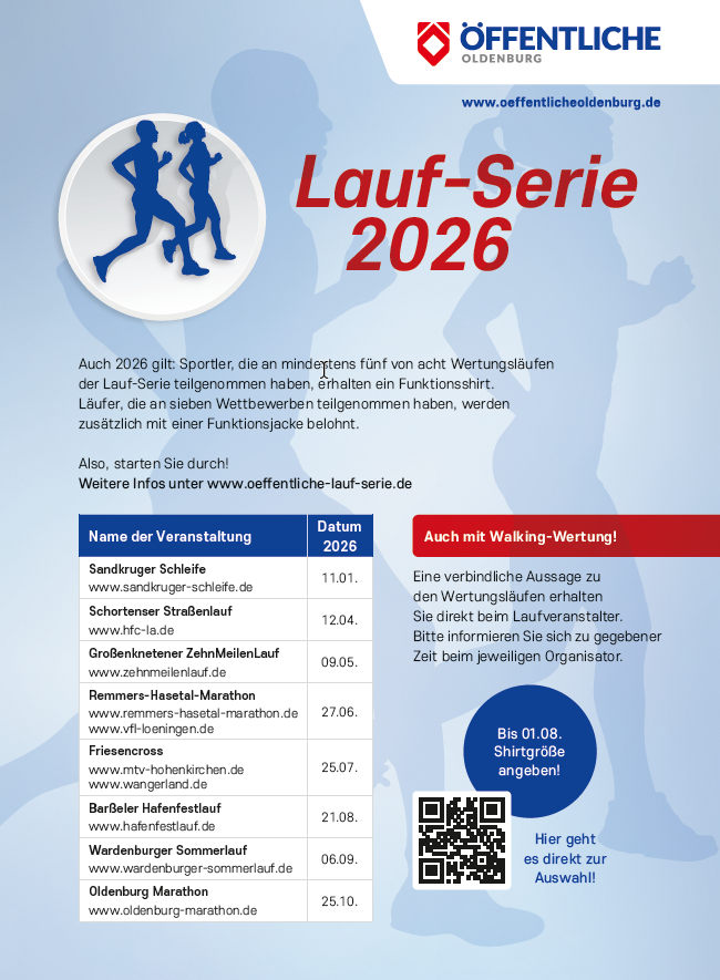 Öffentliche Laufserie 2026 Der ZehnMeilenLauf Großenkenten ist Teil der Öffentliche Lauf-Serie 2026. Mehr Infos gibt es hier.